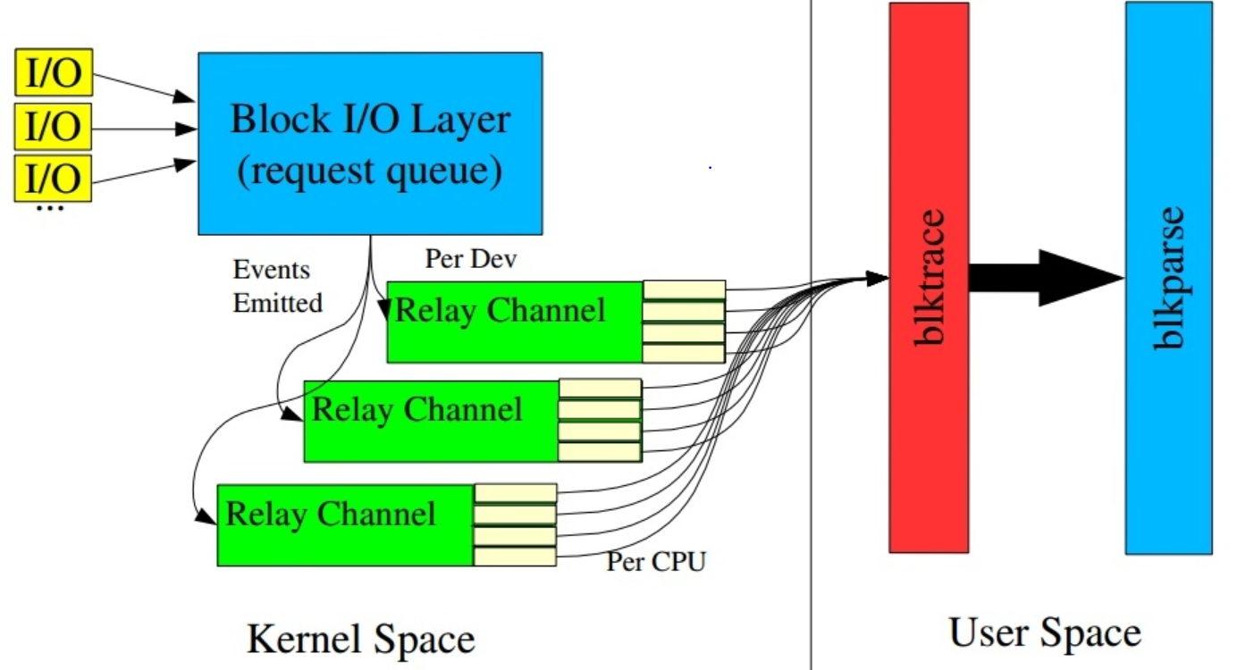 blktrace는 사용자 큐까지 요청 큐 조작에 대한 자세한 정보를 제공하는 블록 계층 IO 추적 메커니즘입니다.