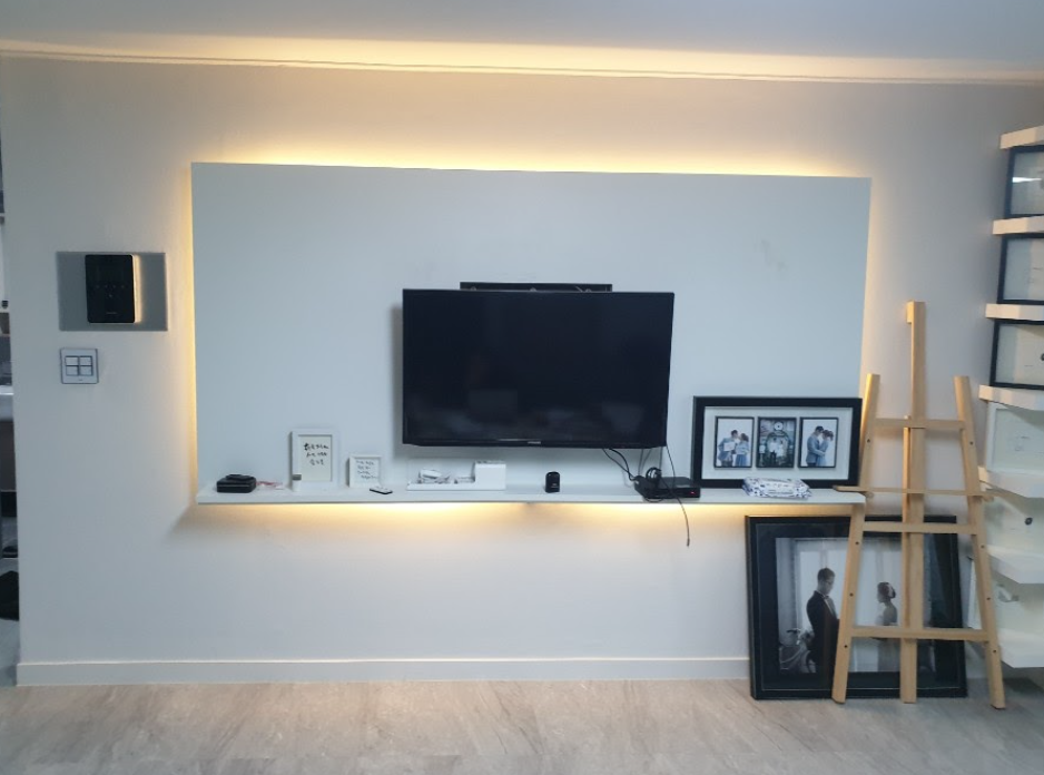 셀프 인테리어를 하면서 한가지 포인트를 준 부분은 아트월입니다. 크게 2가지의 목표가 있었습니다. 1. 거실에 거실장을 없애고 싶다 2. 포인트 조명으로 거실 분위기를 업그레이드 시키고 싶다