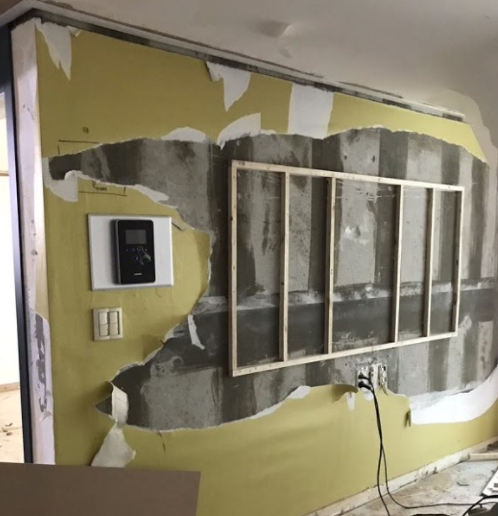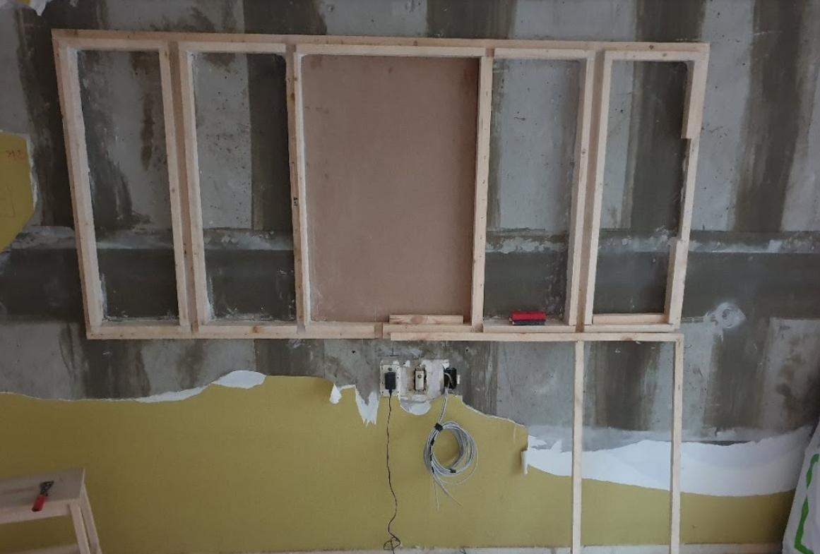 맨 처음 해당 부분을 설계 할때 가장 걱정했던 부분은 안전이었습니다. 콘크리트 벽에 각재를 피스 또는 타카를 통해 고정하는 방법을 사용했습니다. 그리고 내부에 각제를 충분히 넣어서 무게를 분산하는데 중심을 뒀습니다.